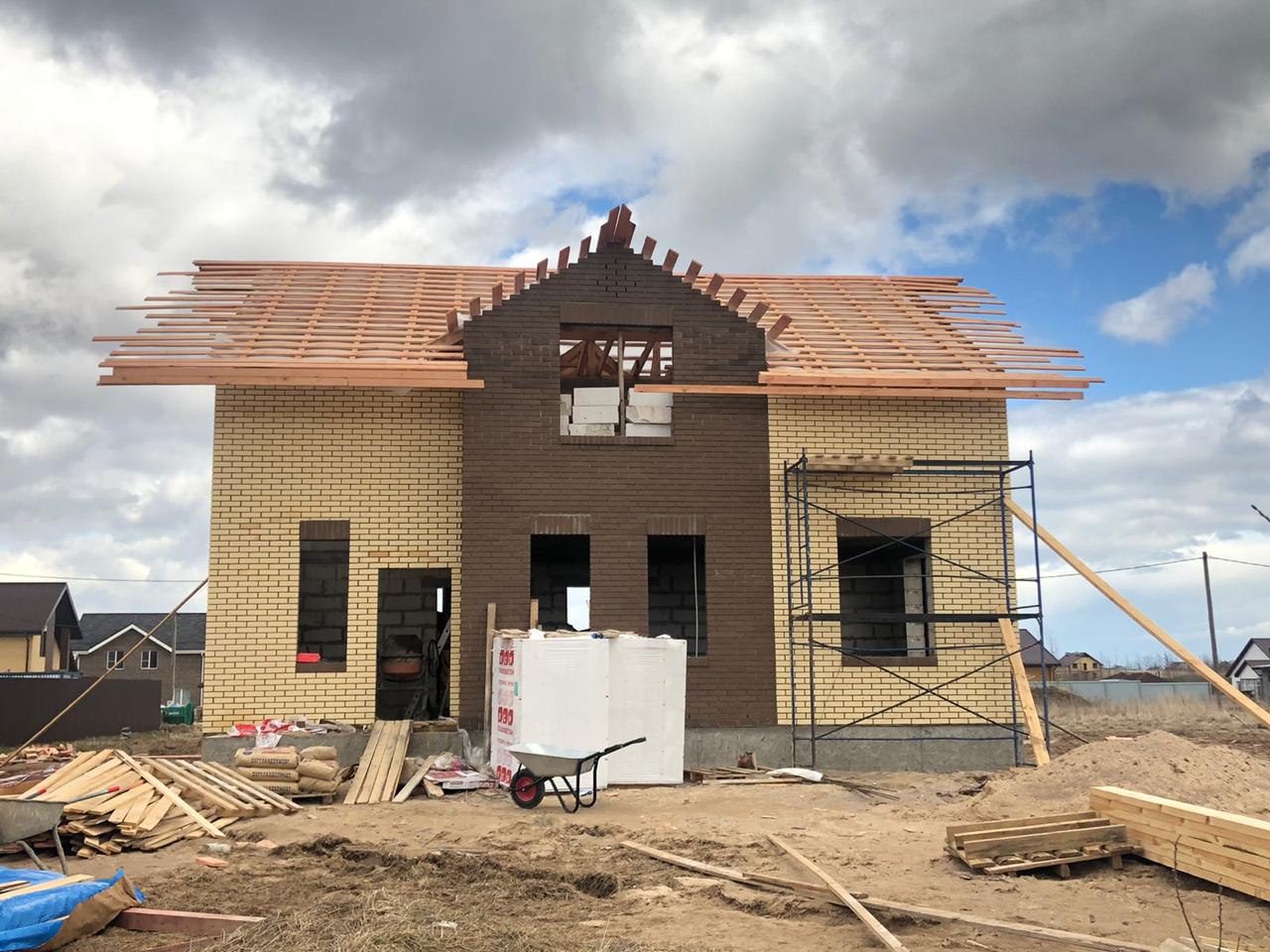 Закончены облицовочные работы 1-го этажа дома по проекту "Луиджи" в КП "Радионово-Парк"