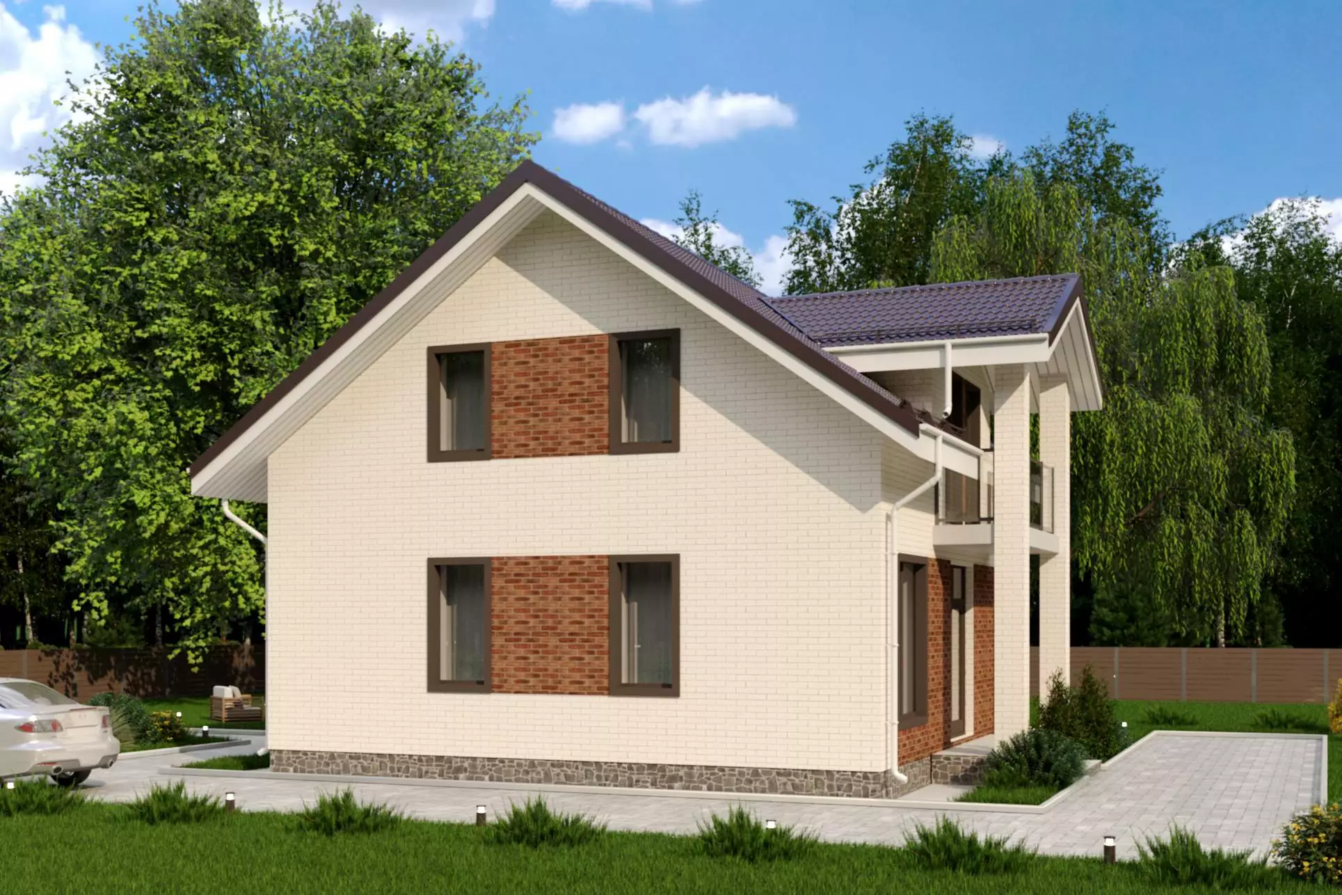 Проект привлекает внимание своим интересным архитектурным решением. Украшением фасада стали высокие колонны с балконом, придающим зданию элегантность.