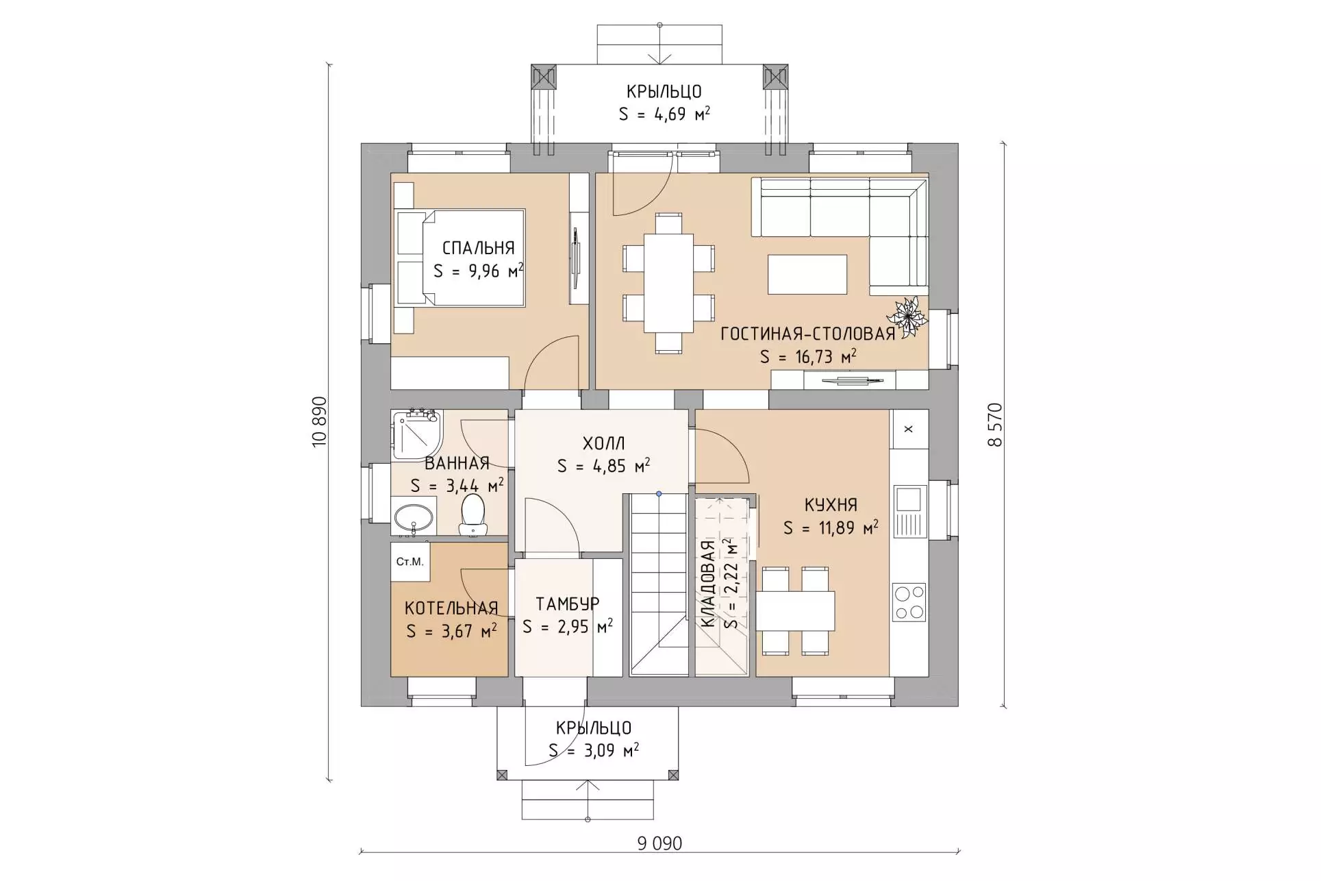 Внутренние несущие стены из газобетона 625*250*250 D400 и/или 625*250*300 D300 - Крыльцо с бетонными ступенями и навесом