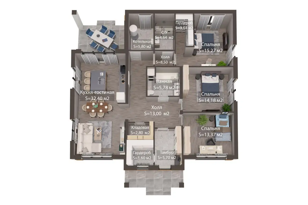 «Франческа» - одноэтажный дом площадью 152м².