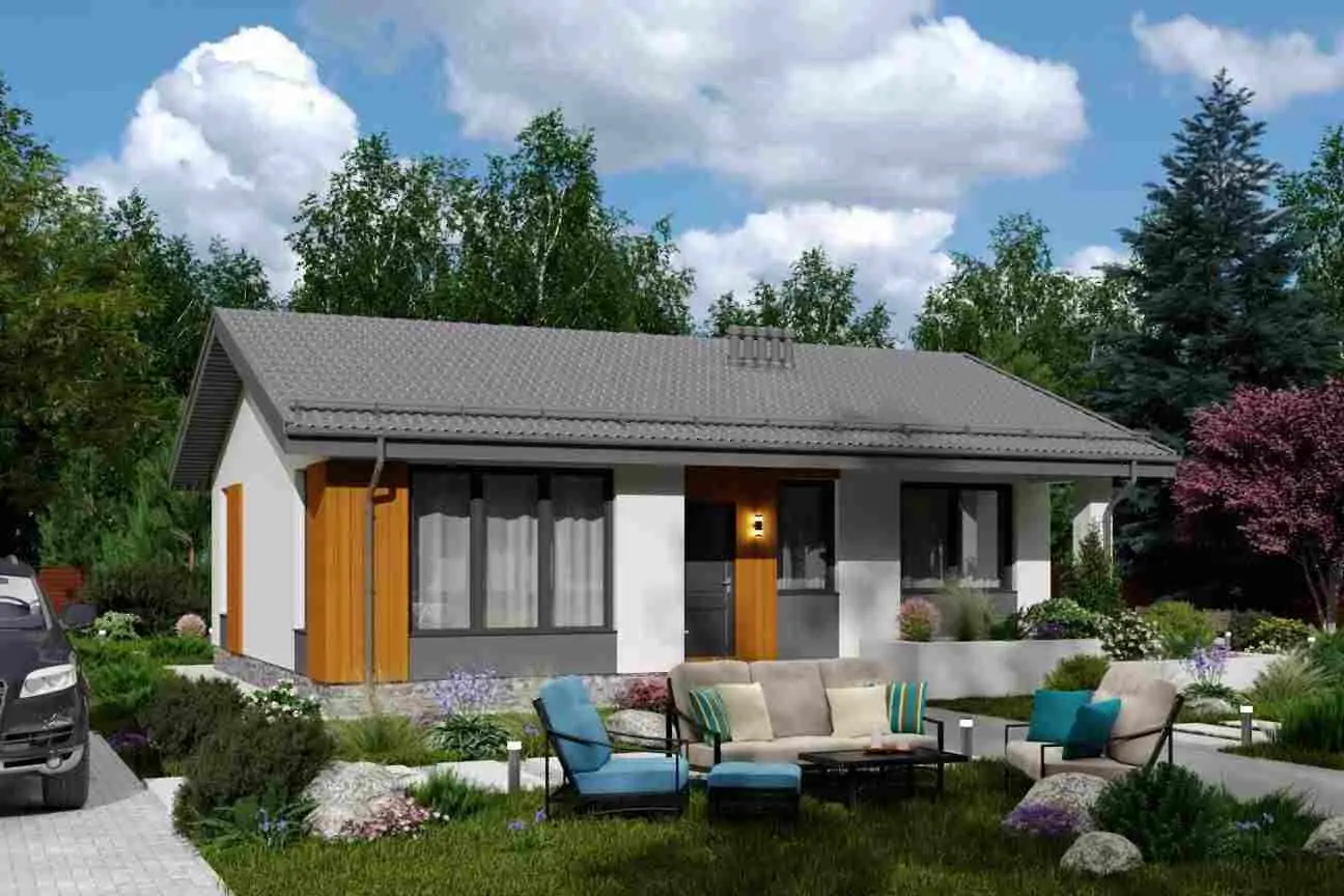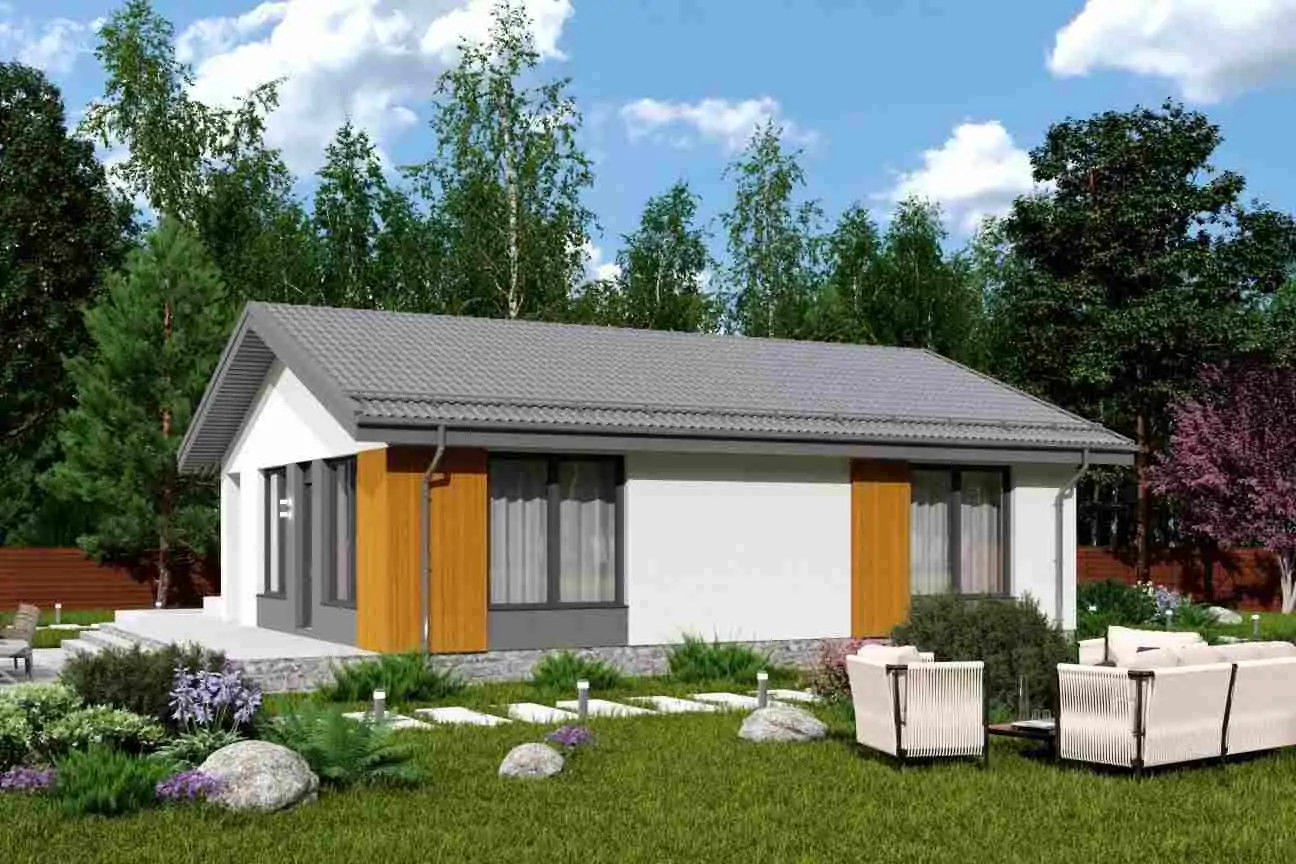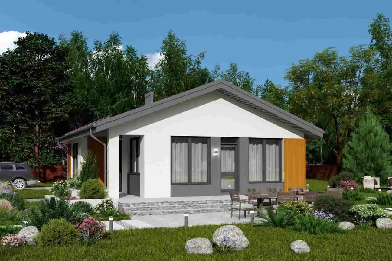 Проект "Мика"- одноэтажный жилой дом, который создан для комфортной проживания небольшой семьи, мечтающей о жизни за городом.