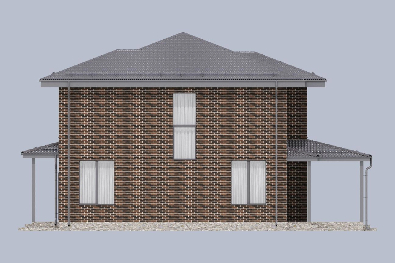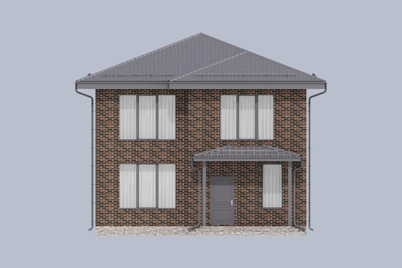 Фасад выполнен из кирпича типа «флеш». Панорамные окна подчеркивают особую индивидуальность дома, создают ощущение простора и легкости внутреннего пространства.