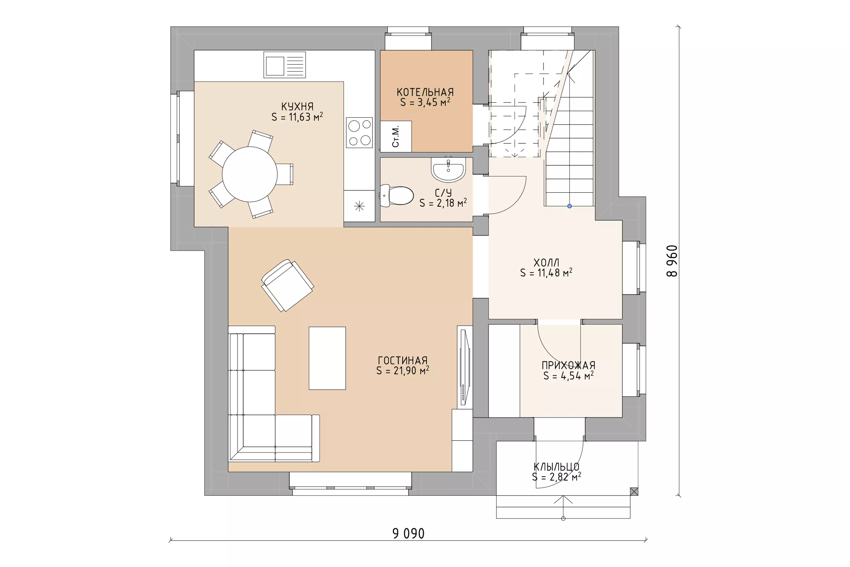 Внутренние несущие стены из газобетона 625*250*250 D400 и/или 625*250*300 D300 - Крыльцо с бетонными ступенями и навесом
