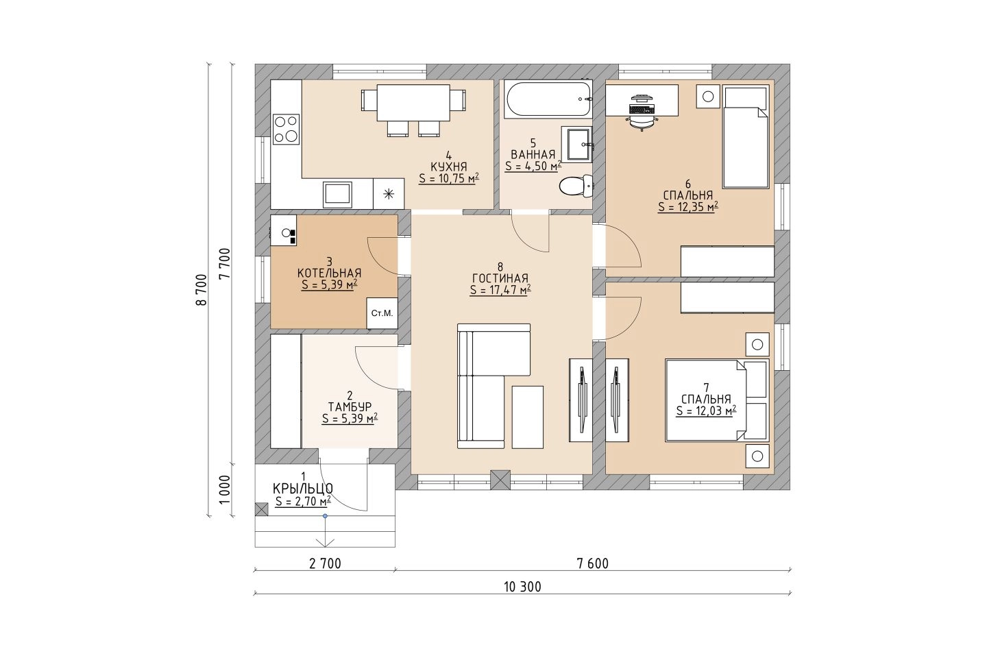 | Внешние несущие стены из газобетона 625*250*300 D300 Внутренние несущие стены из газобетона 625*250*250 D400 и/или 625*250*300 D300 | + | + | + |