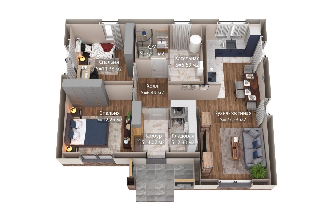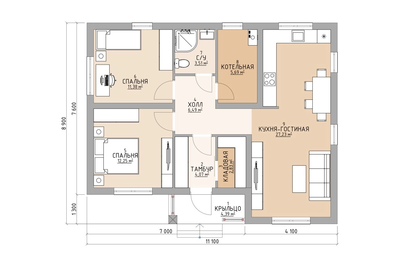 "Нора" - проект жилого одноэтажного дома площадью 82 м².