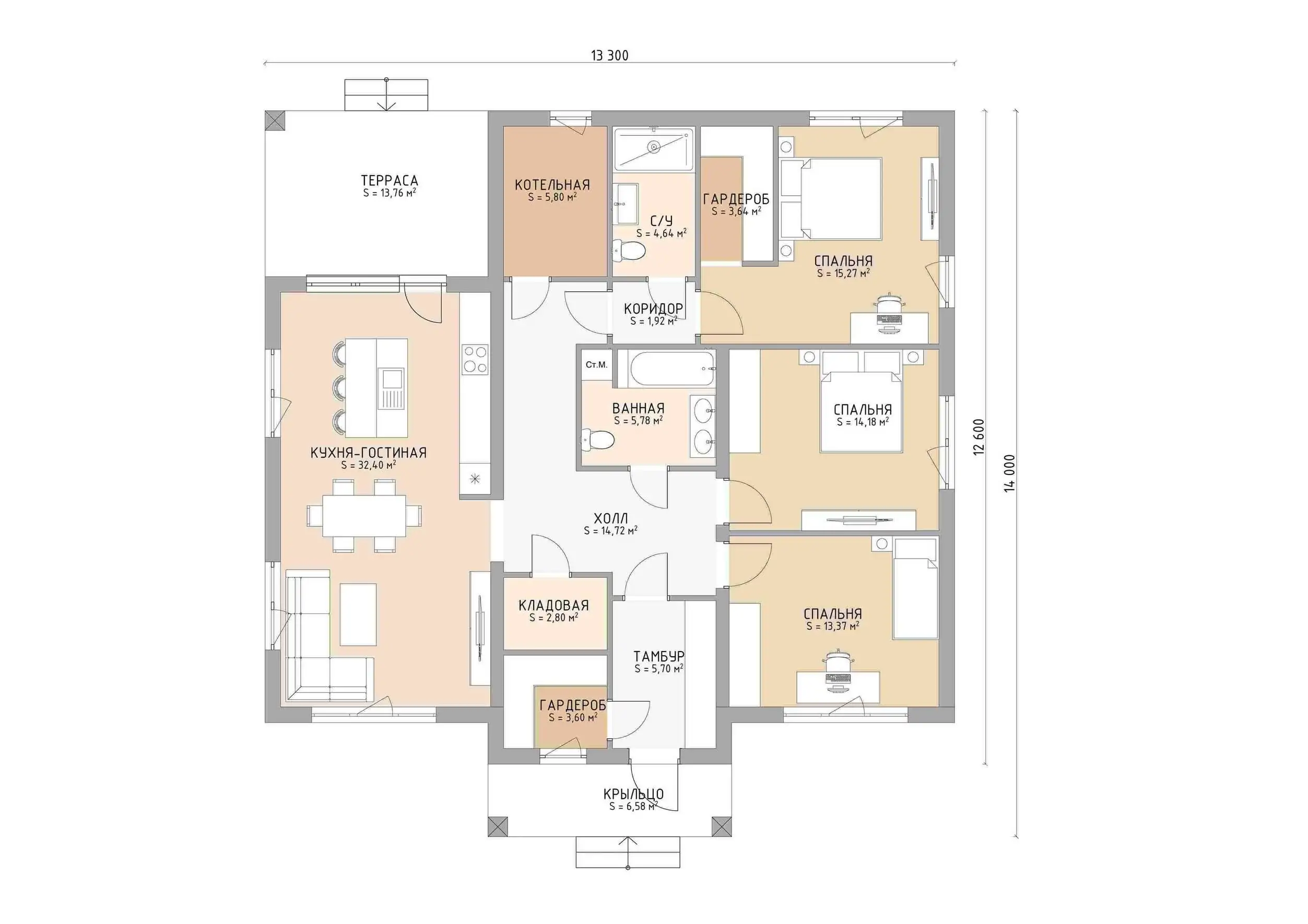 «Франческа» - одноэтажный дом площадью 152м².
