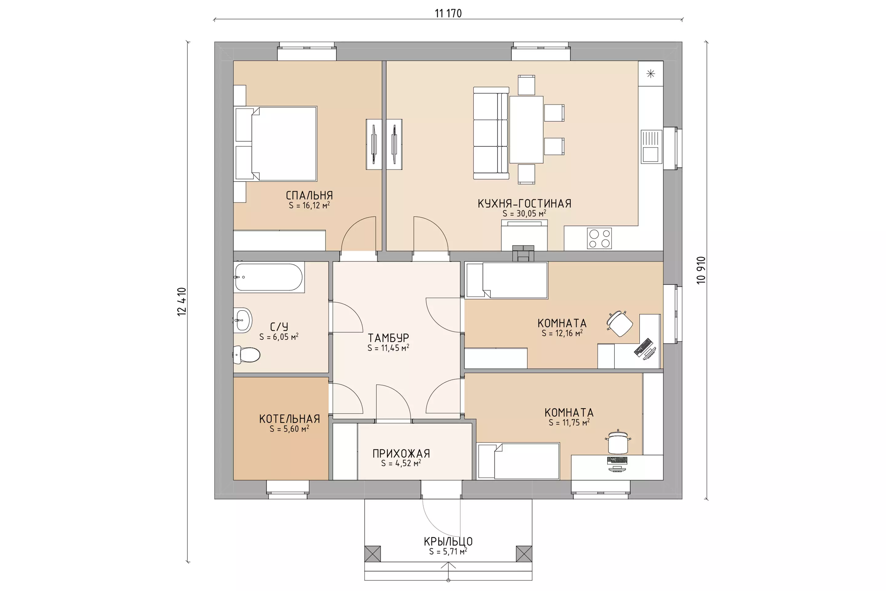 | Крыльцо с бетонными ступенями и навесом | + | + | + |